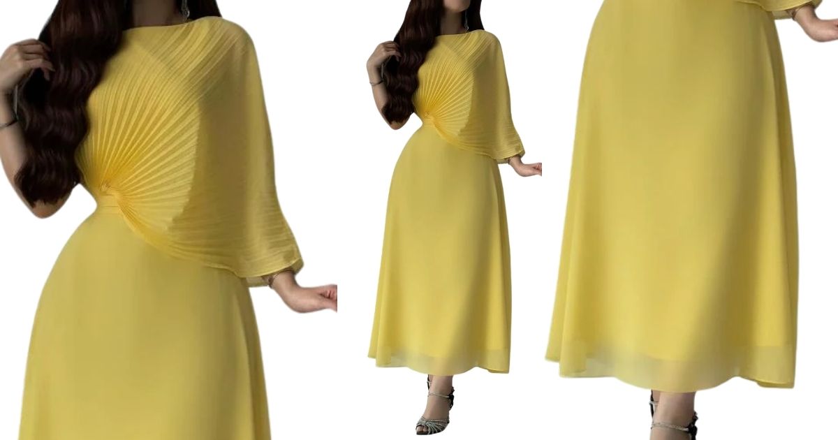فستان ناعم طويل أصفر شيفون يليق بصاحبات الذوق الرفيع وعاشقات الألوان الجريئة، اللون الأصفر الكناري يُميز الفستان وقصة أكمامه سر زيادة الطلبات عليه، فهو يأتي بقصة اوف شولدر مميزة بليسيه تُغطي الكم، احصلي عليه دون تردد من متجر إلنورا للفساتين.
