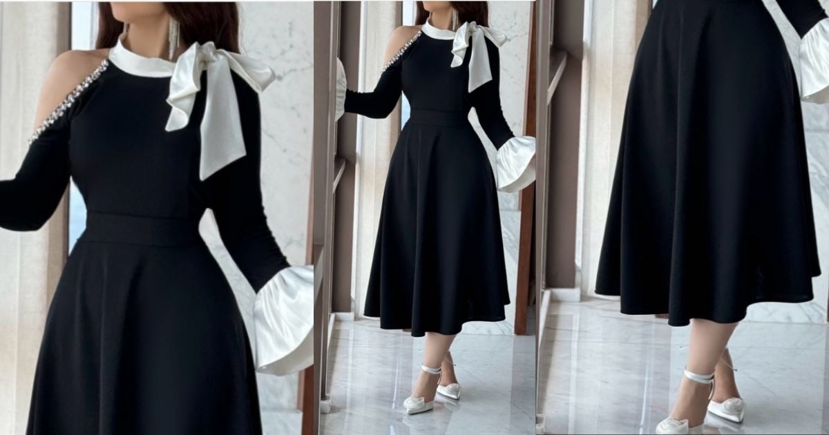 هذا الفستان ليس بحاجة لوصف طويل، إن كنتِ قصيرة القامة وتبحثين عن فستان يظهرك بإطلالة أطول، فهو أمامك الآن، فستان ناعم ميدي أسود قصته أنيقة وطوله يخدم إطلالتك من اللحظة الأولى، لن تحتاري في تنسيقه، ولن تحتاجي إلى تغيير أي تفصيلة فيه، هو مناسب، جاهز، ويليق بمناسباتك الخاصة والعامة، احصلي عليه الآن.